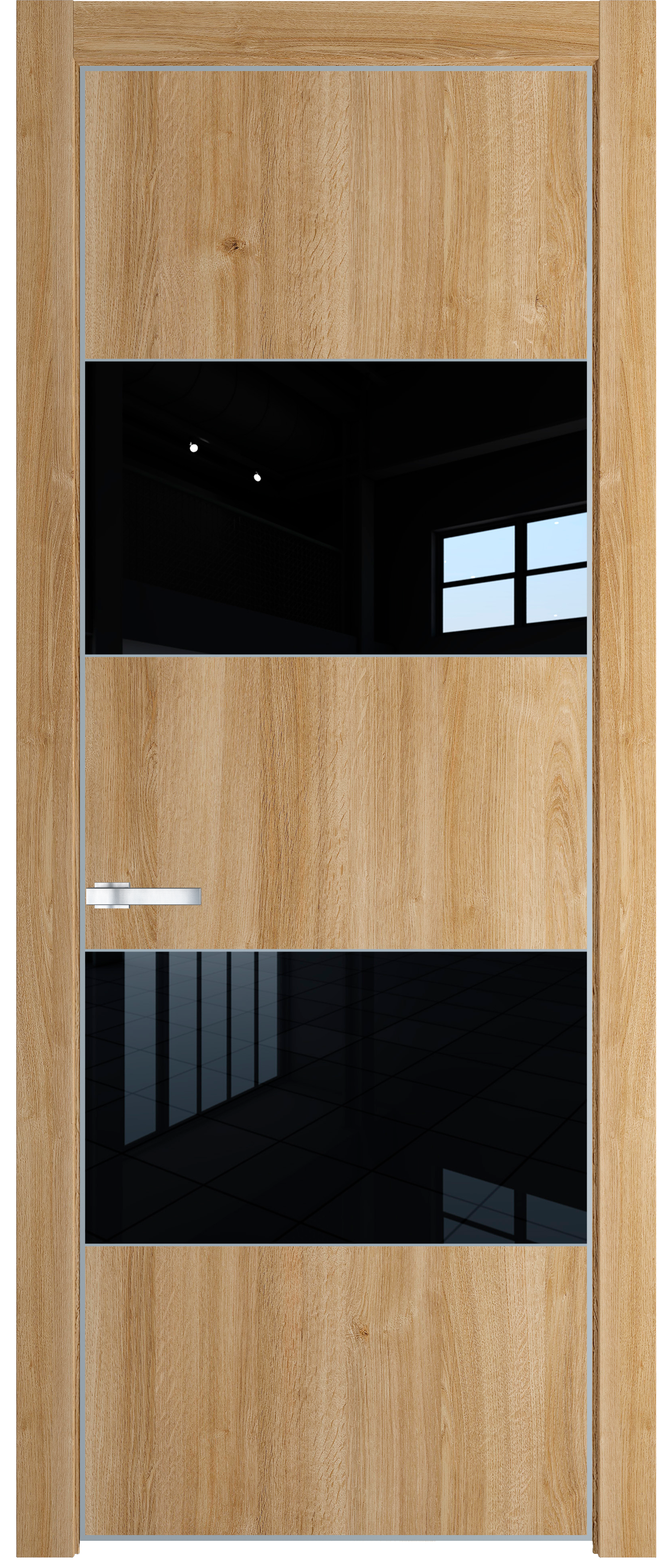 22NE, Дуб Карамель, Lacobel Черный лак, Серебро